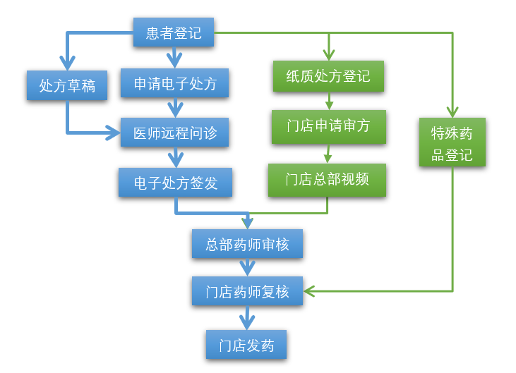 支持电子处方远程和远程审方结合,尤其适合连锁药店自带诊所的情形,实现诊所医师开方、总部执业药师审方、门店药师符合的流程;